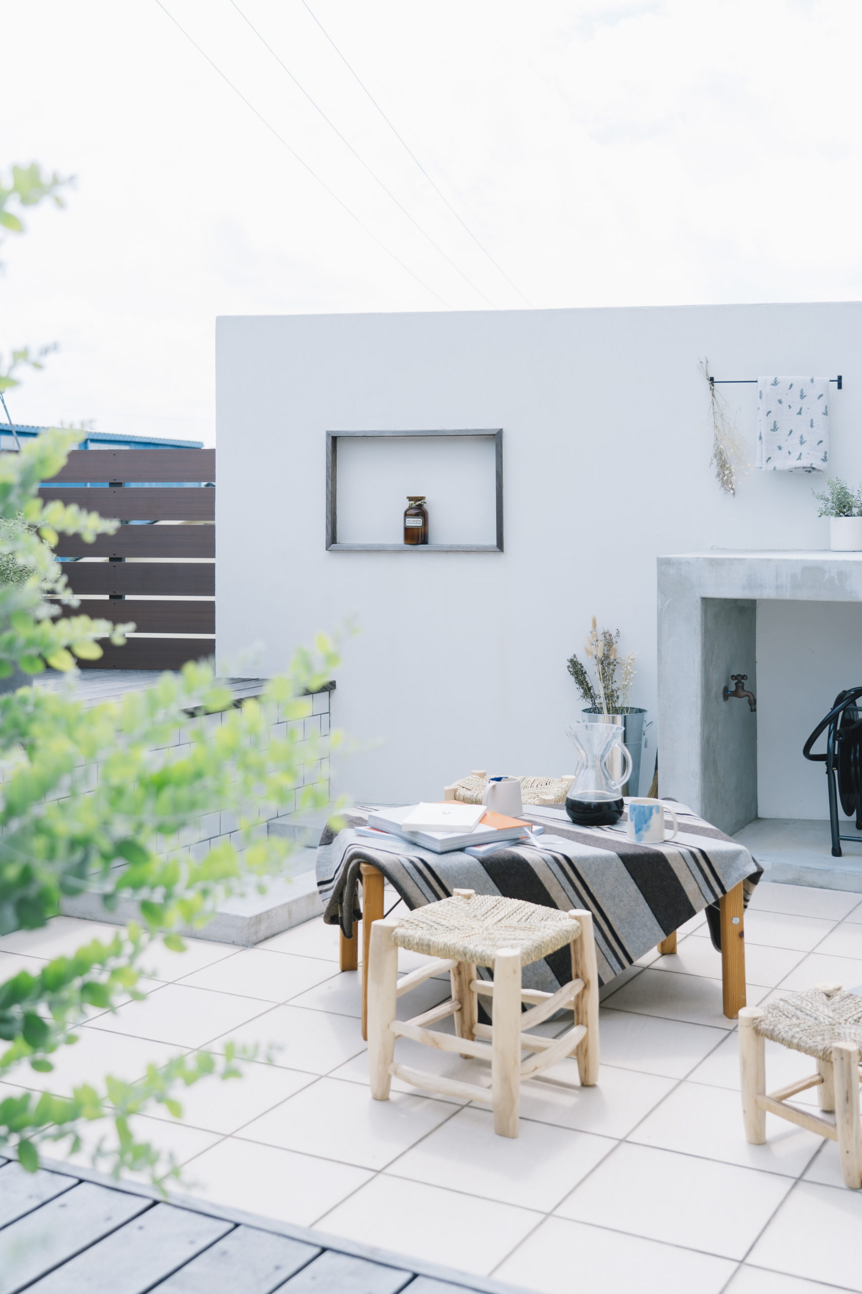 新築当初に設けられていたタイルデッキのある庭は庭という空間ではありながら、使う場面は限られていた。日常の中でもっと自然に足を運びたくなるような、居心地のよい空間にしたい。そんな思いから今回のリノベーションが始まった。